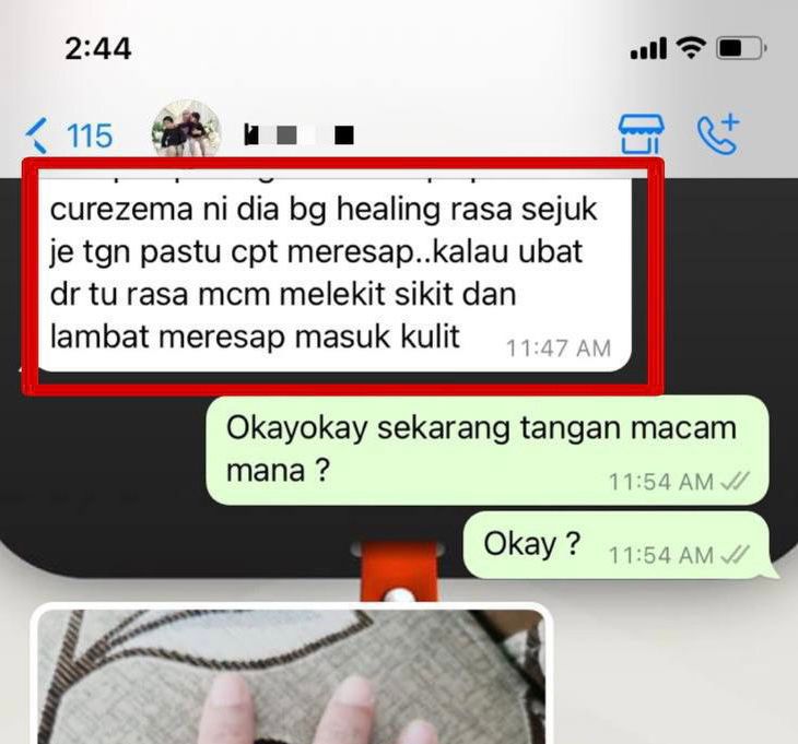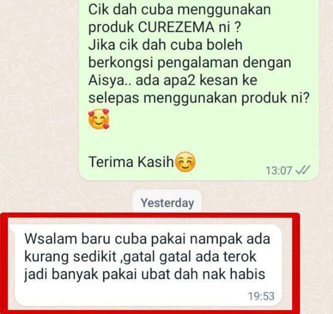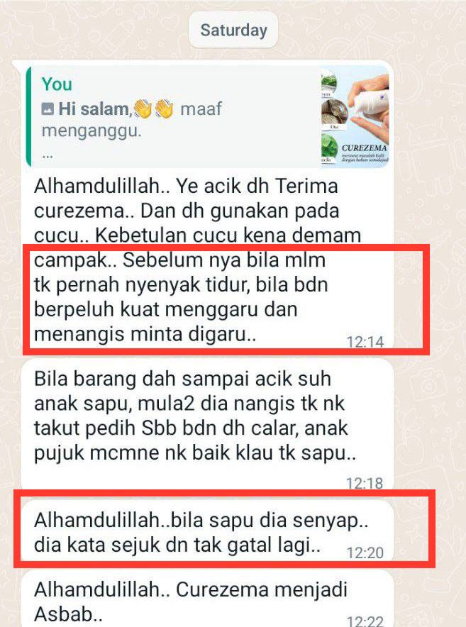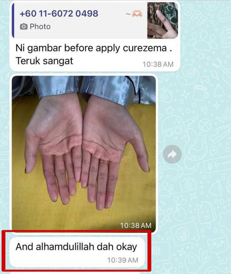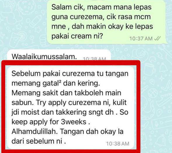 “Curezema paling berkesan sejak 2019 saya ada masalah kulit, dah banyak krim & banyak doktor saya jumpa tapi tak berkesan”