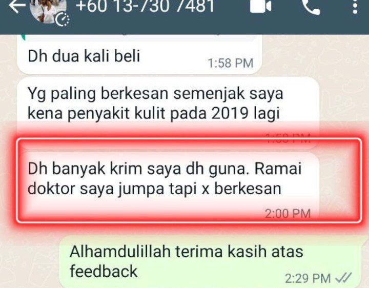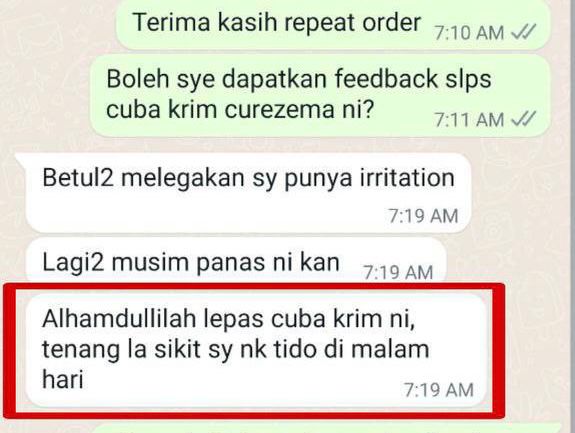 “Mmg bagus krim ni, ni tgan skrg. Mmg hilang ekzema saya”
