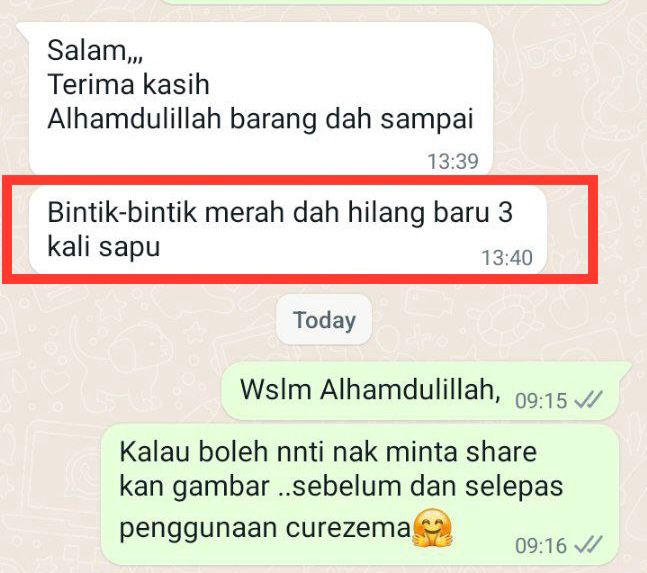 Lepas dah gunakan Curezema, kami yakin anda akan kembali semula ke web ini untuk repeat lagi order.